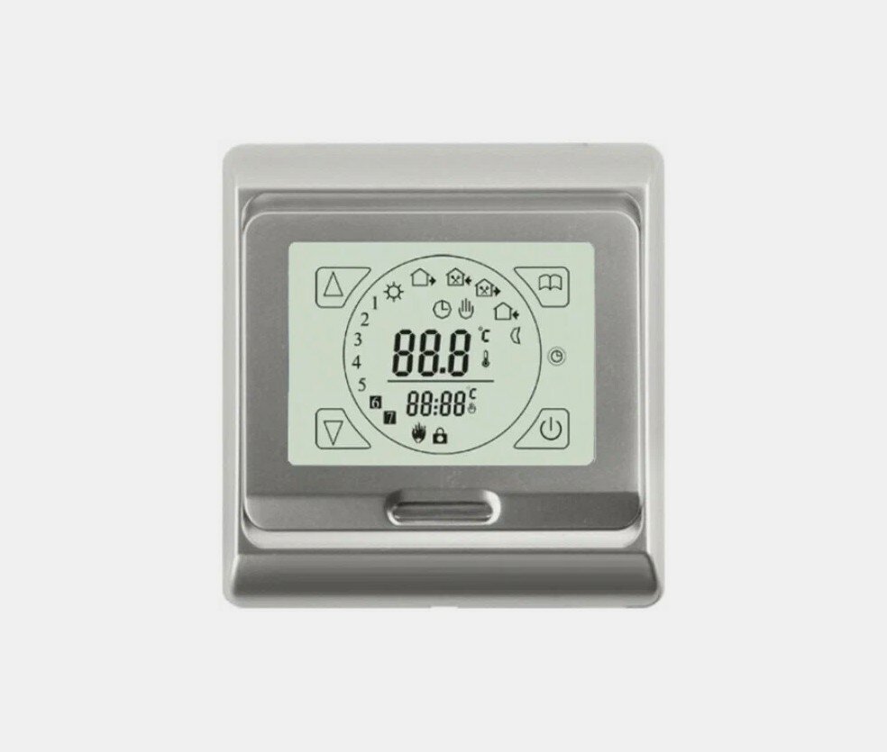 Терморегулятор E91.716 программируемый (с датчиком пола и воздуха), Цвет Серебро