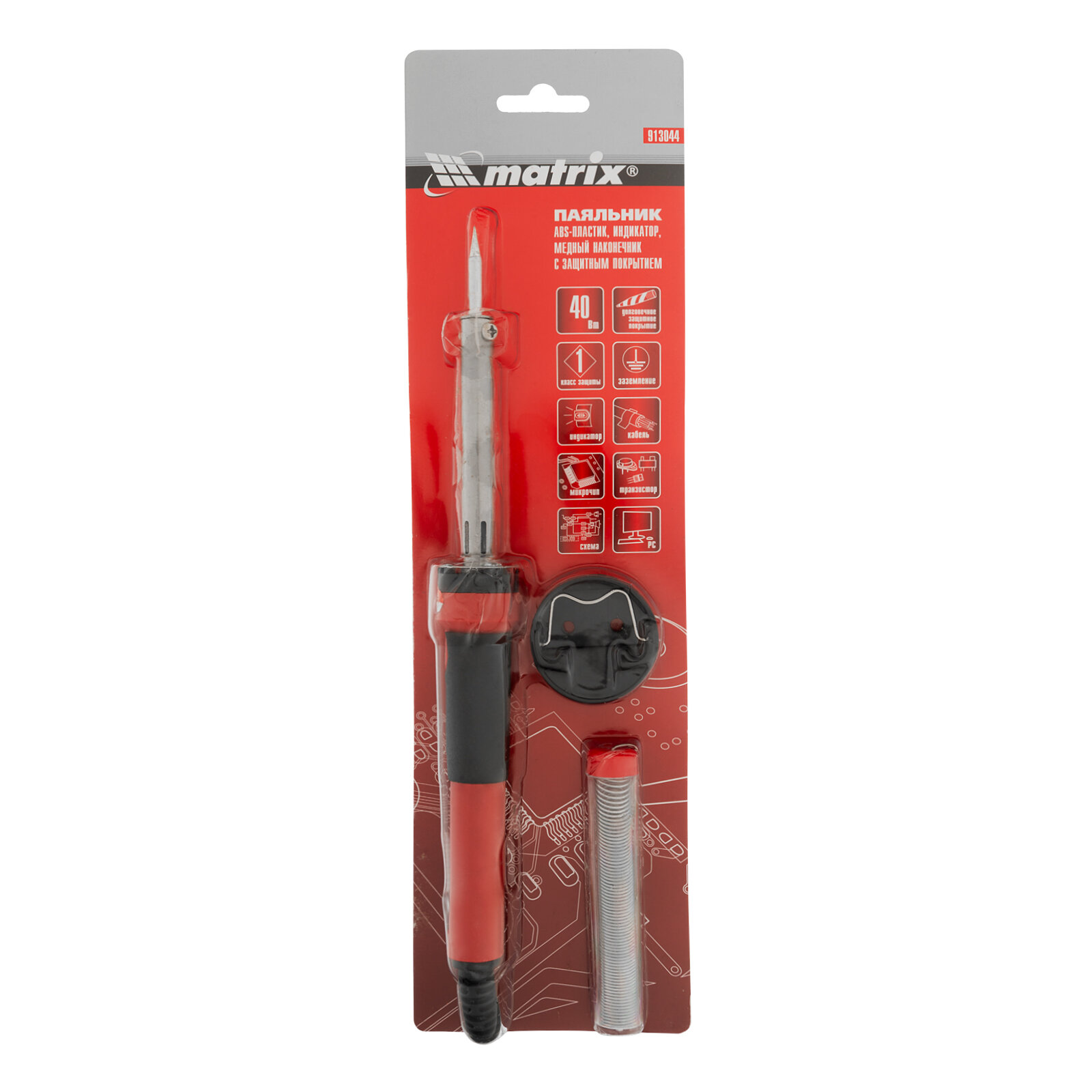 Паяльник Matrix 913044, пластик ABS, класс защиты 1, индикатор, медный наконечник с долговечным покрытием,220В,40W