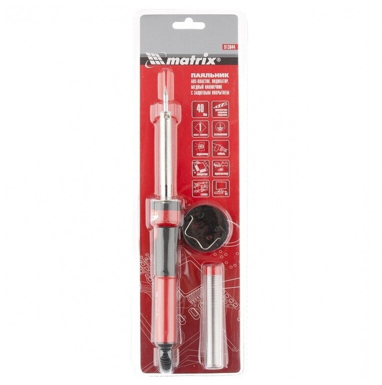 Паяльник, пластик ABS, класс защиты 1, индикатор, медный наконечник с долговечным покрытием, 220 В, 40 W Matrix ( 913044 )