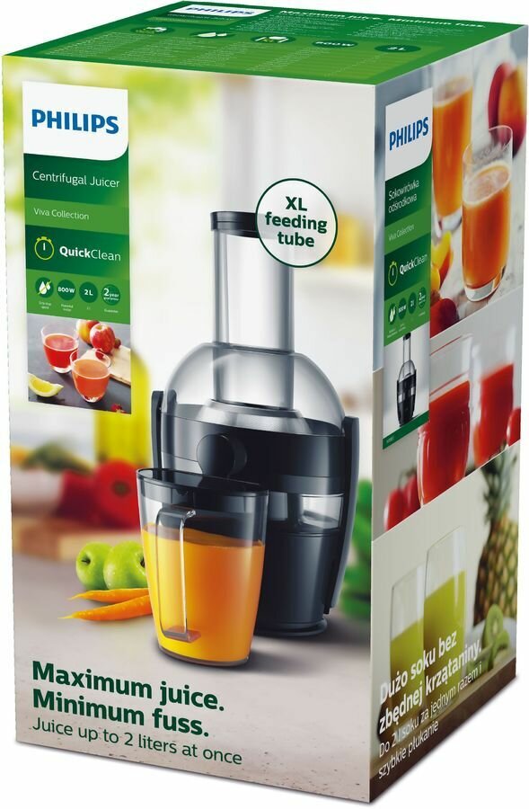 Центробежная соковыжималка Philips HR1855/70 Viva Collection, чернильно-черный интересное: