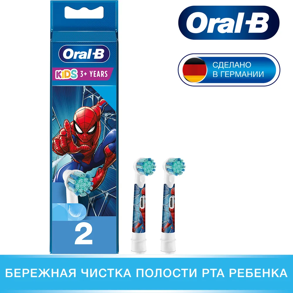 Набор насадок Oral-B Kids Человек-Паук для электрической щетки, белый/синий, 2 шт.