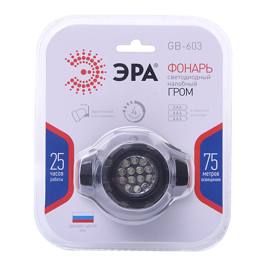 Фонарь налобный GB-603 ЭРА [14xLED, 3xAAA, 4 реж., черный, бл]