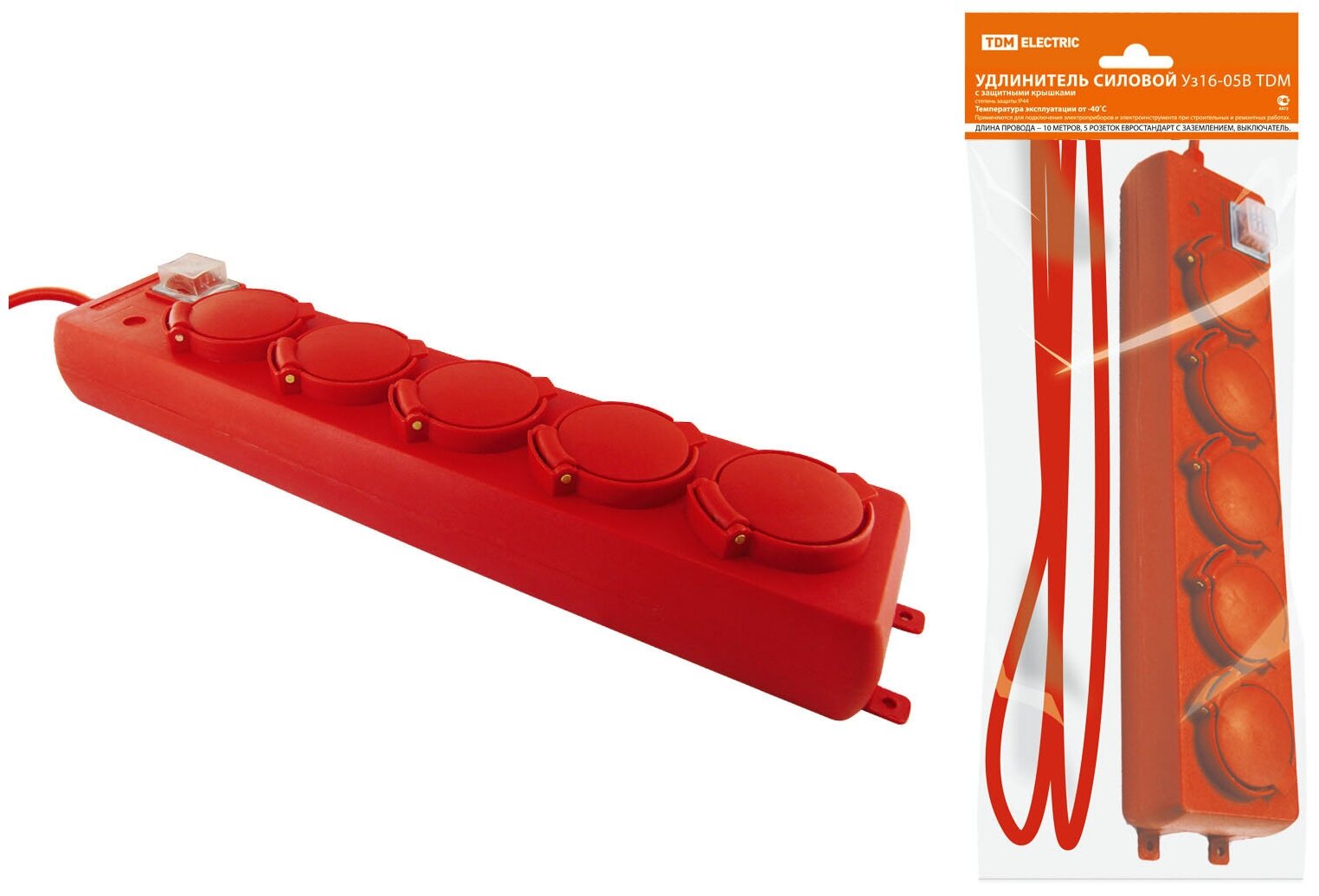 Удлинитель силовой Уз16-05В TDM (с крышками IP44, выключатель, 5 мест/10м КГ 3х1,5)