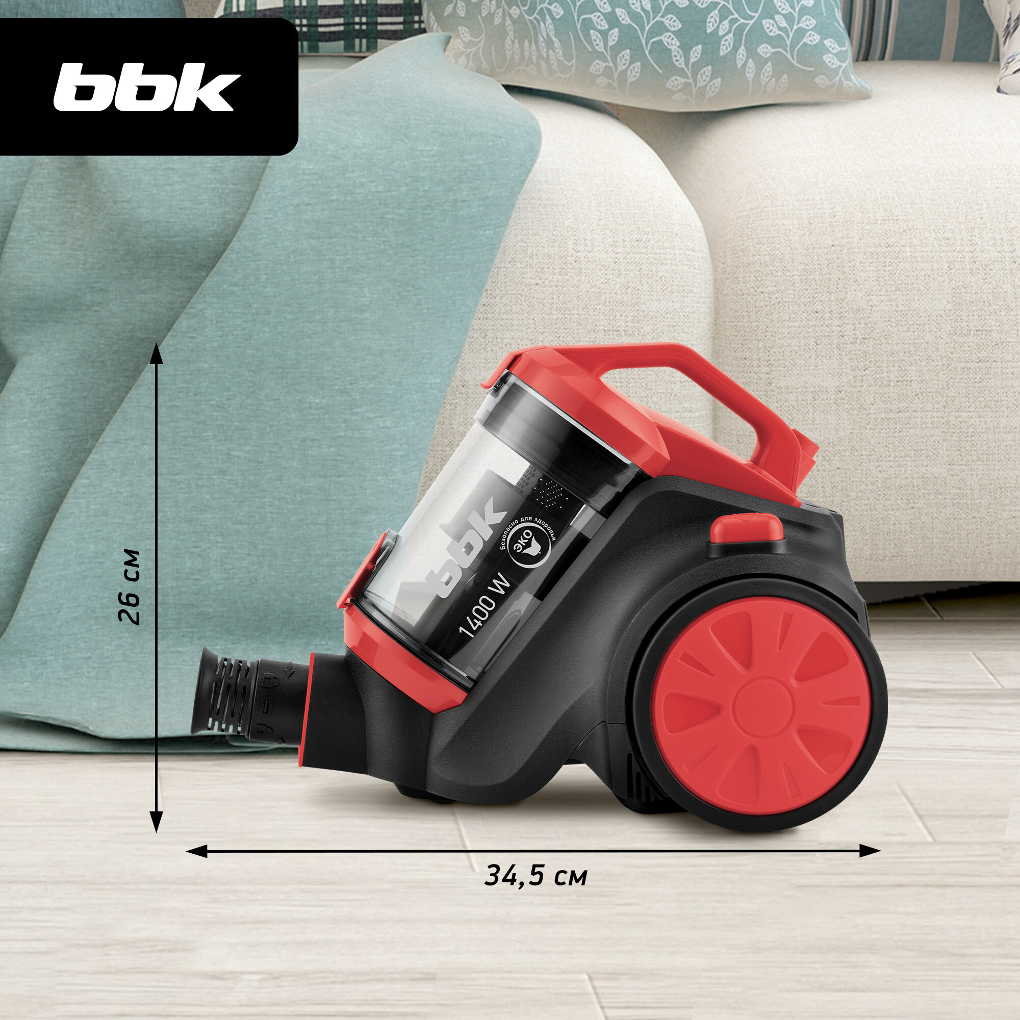 Пылесос циклонный BBK BV1507 красный/черный, мощность всасывания 245 Вт, объем пылесборника 1,5 л, сухая уборка