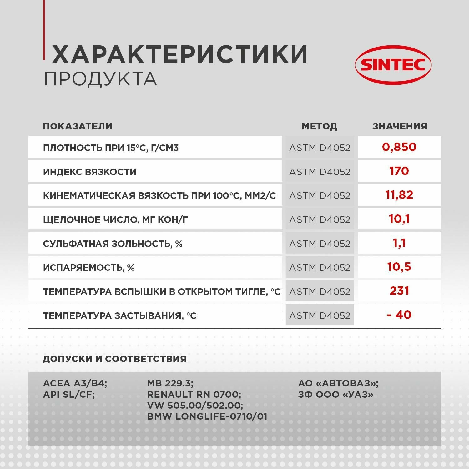 | Стандарт ACEA | A3/В4 |