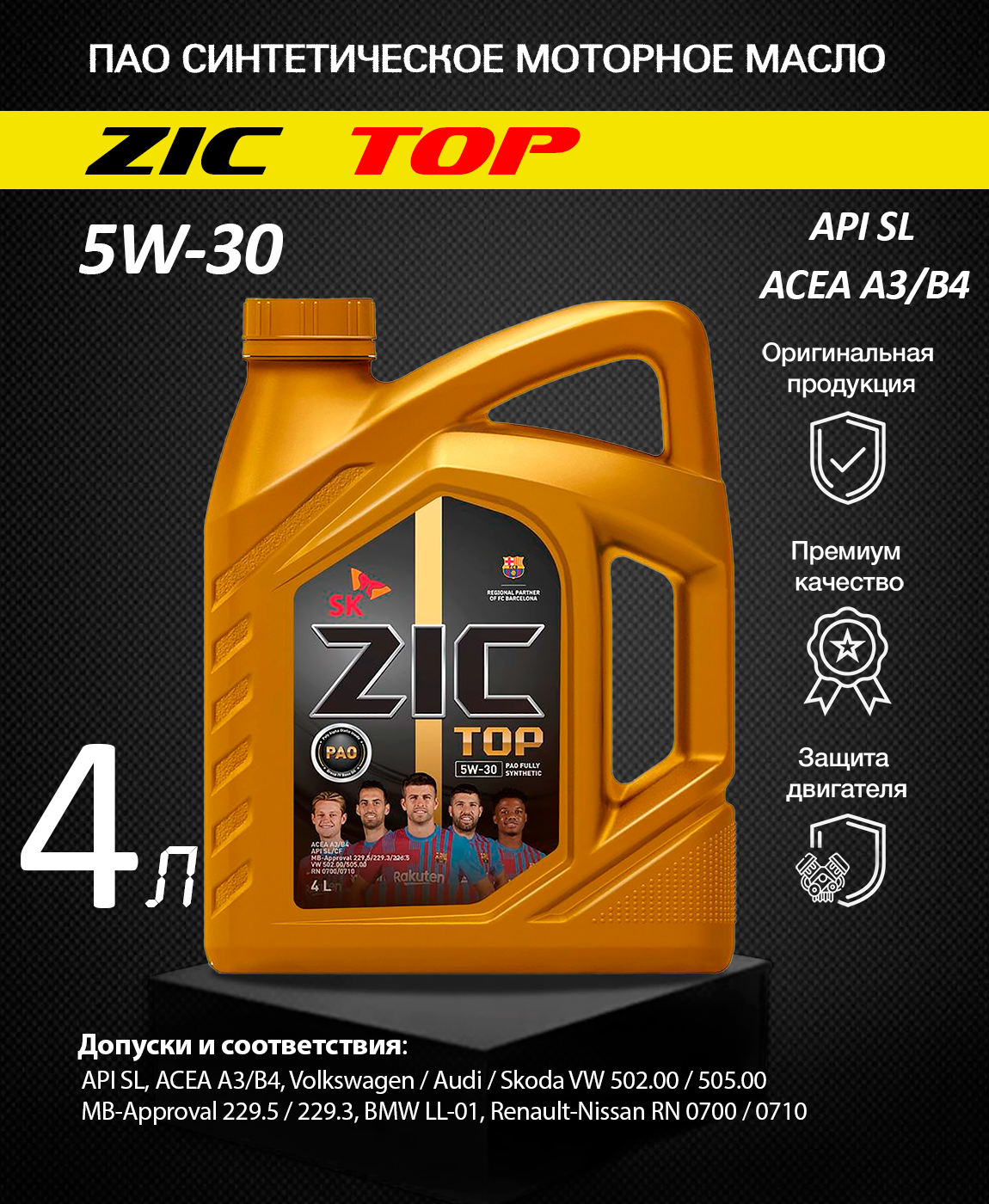 Синтетическое моторное масло ZIC TOP 5W-30, API SL; ACEA A3/B4, 4 л, 1 шт. арт. 162681