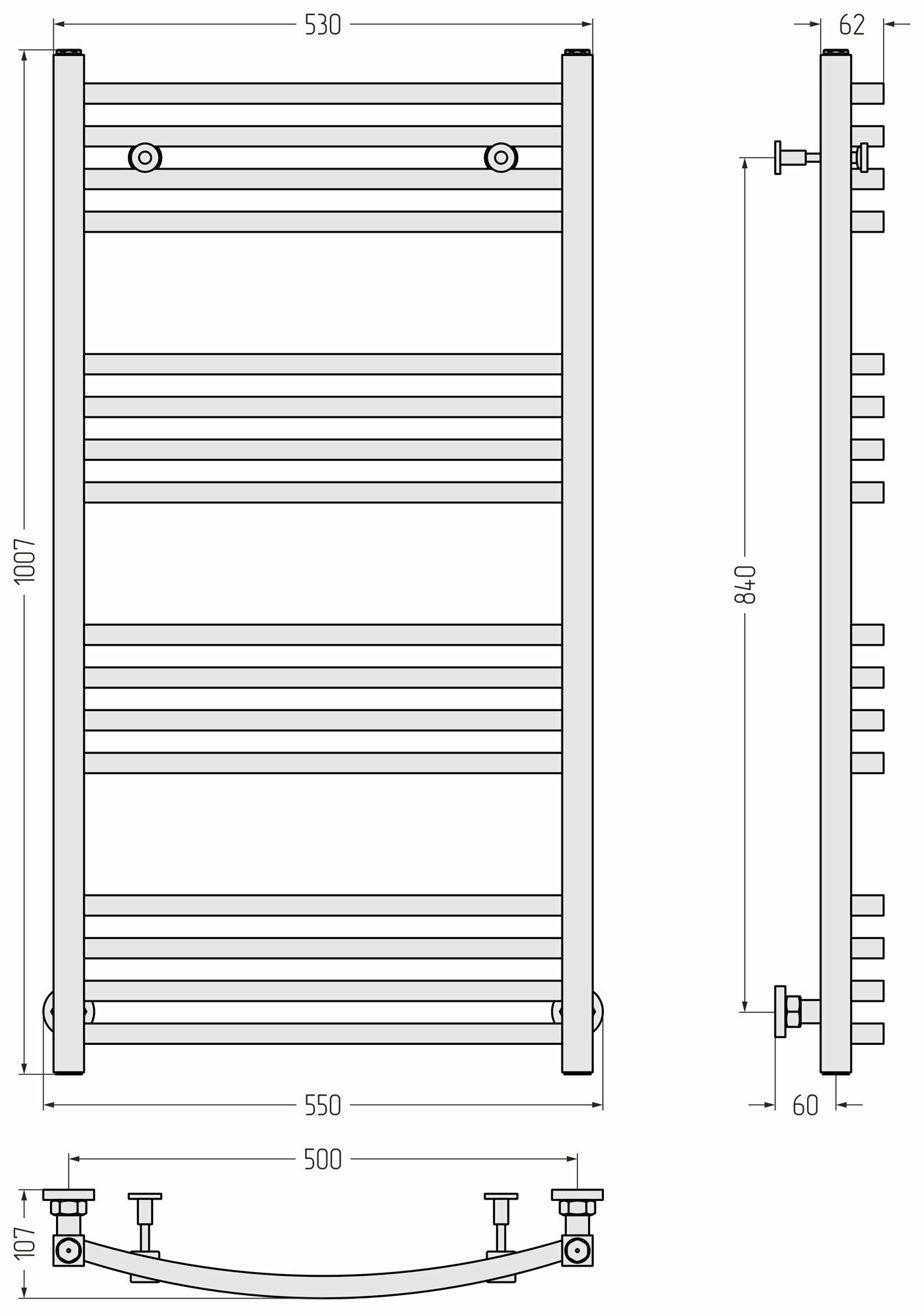 Водяной полотенцесушитель Сунержа Аркус 1000x500 арт. 00-0251-1050