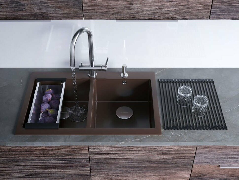 Кухонная мойка двухчашевая OMOIKIRI Bosen 80-2-BL, искусственный гранит/две большие чаши/черный
