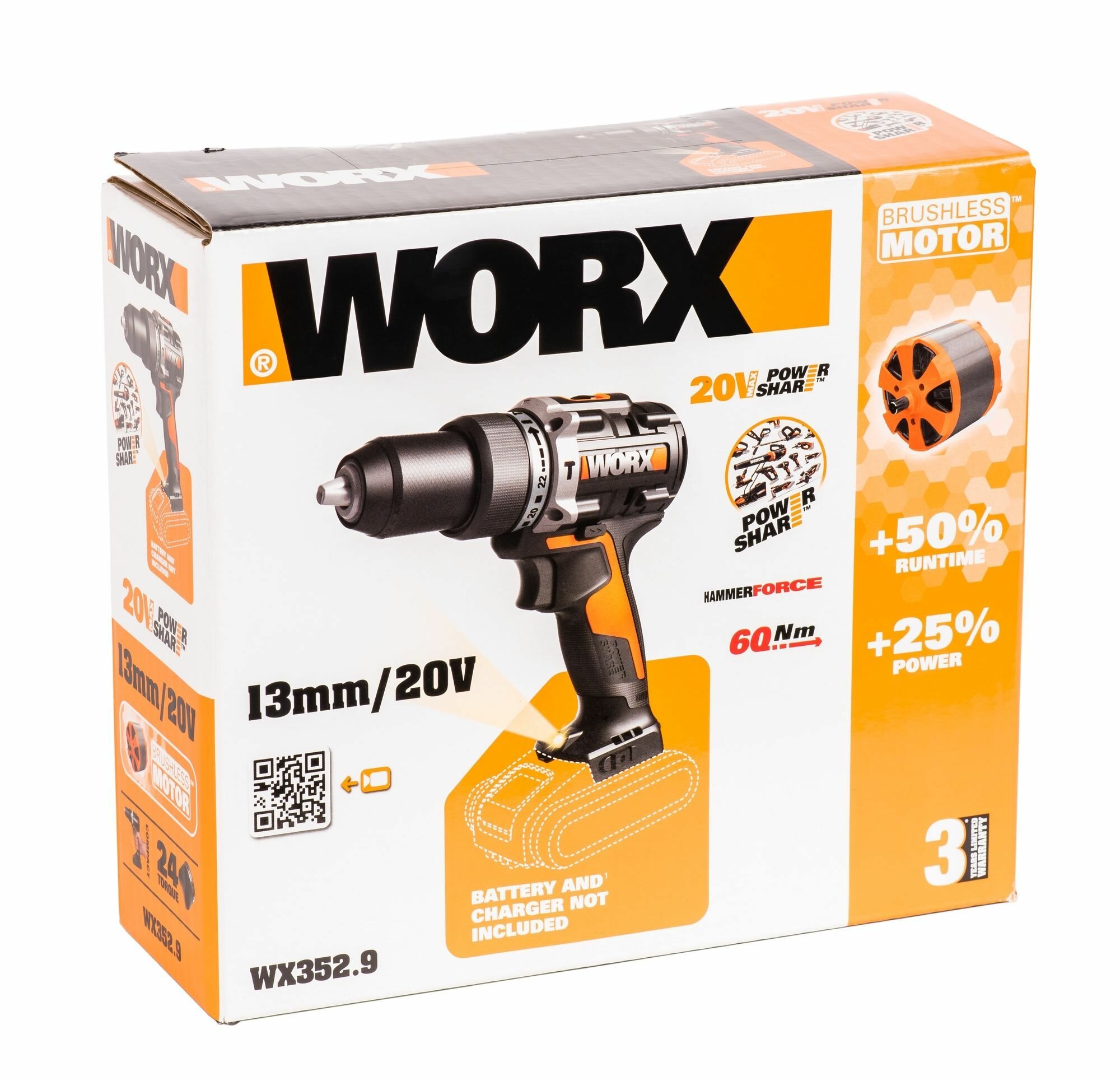 Дрель-шуруповерт ударная WORX WX352.9 20V 60Нм аккумуляторная бесщеточная без батареи и зарядки