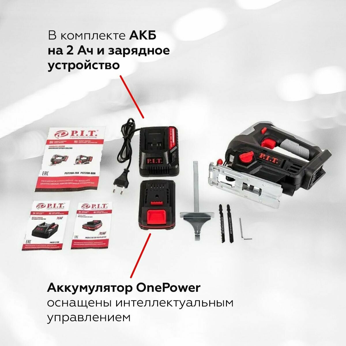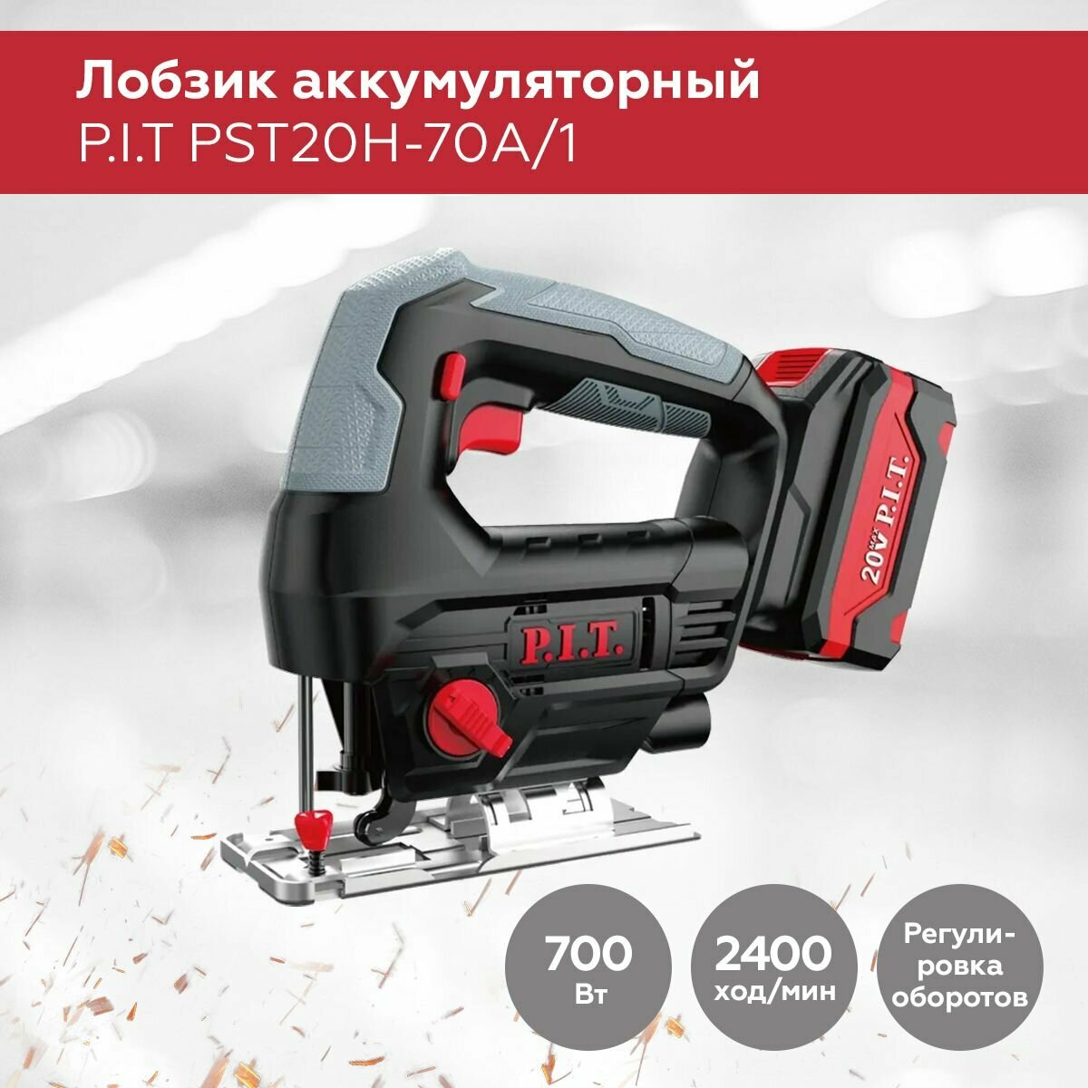 Лобзик аккумуляторный P.I.T. PST20H-70A/1 (20В,пропил 70мм,0-2400об/мин, БЗП, 1акб Li-Ion 2Ач, ЗУ 3А, кейс) P.I.T