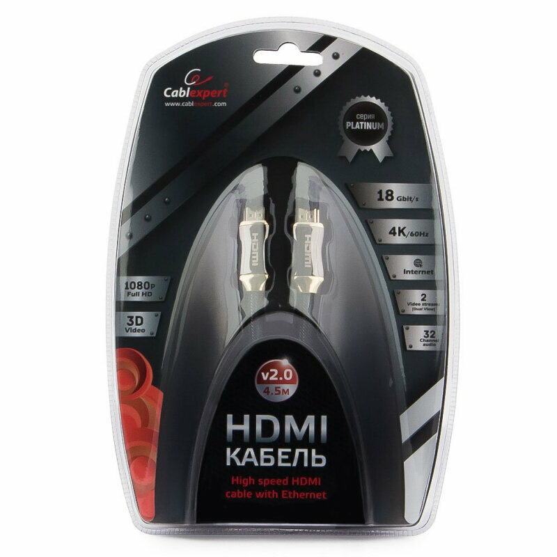 Кабель HDMI Cablexpert серия Platinum 4.5 м v2.0 M/M позол.разъемы титановый металлический
