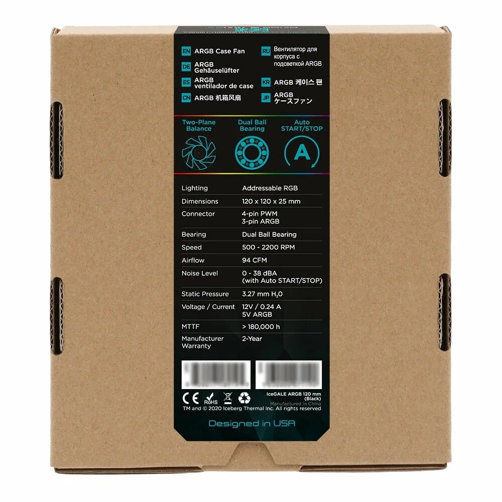 Вентилятор 120x120x25 iceberg IceGALE ARGB BLACK 500 - 2200 RPM