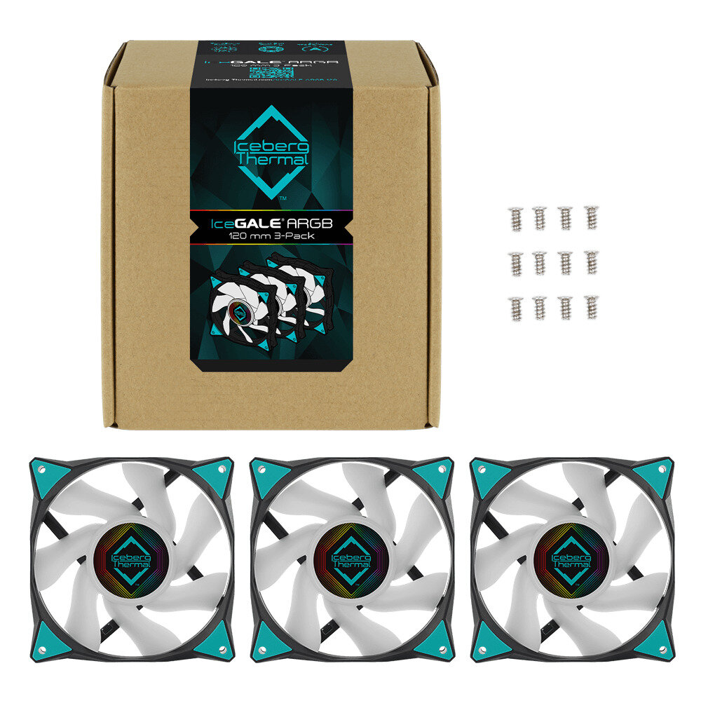 Вентилятор для корпуса Iceberg Thermal IceGALE ARGB 120mm TEAL 500 - 2200 RPM (MTTF 180,000) hours 3-pack (071581)