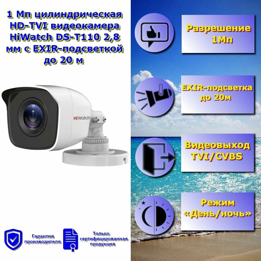 1Мп уличная HD-TVI камера HiWatch DS-T110 (2.8 mm)