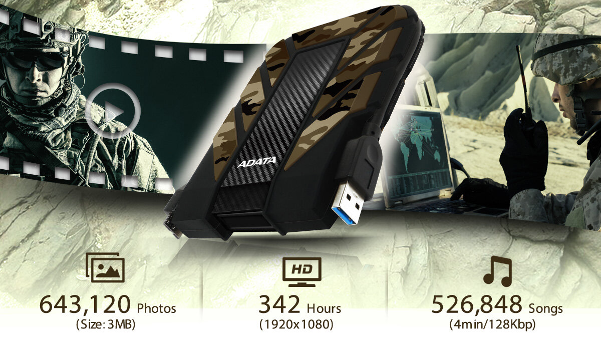 ADATA HD710M Pro - Festplatte - 2TB - extern (tragbar) - USB 3,1 - Camouflage (AHD710MP-2TU31-CCF)