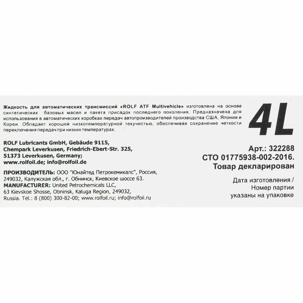 Масло Трансмиссионное Rolf 4Л Atf Multivehicle ROLF арт. 322288