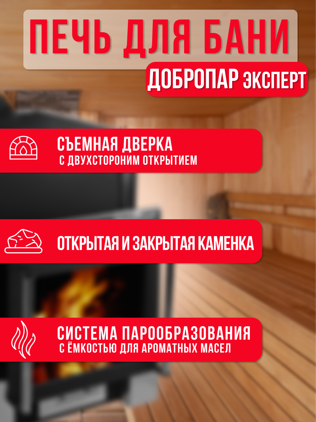 Банная печь ДоброПар Эксперт, с закрытой каменкой