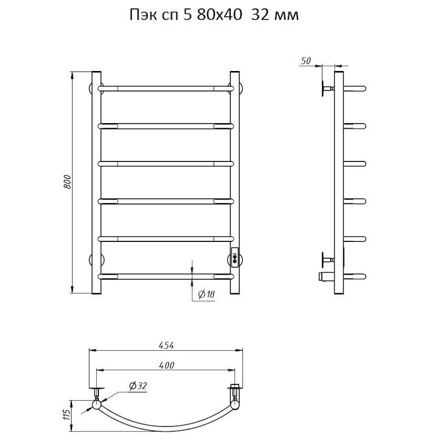 Полотенцесушитель электрический Пэк сп 5 80х40 32 мм (хром)