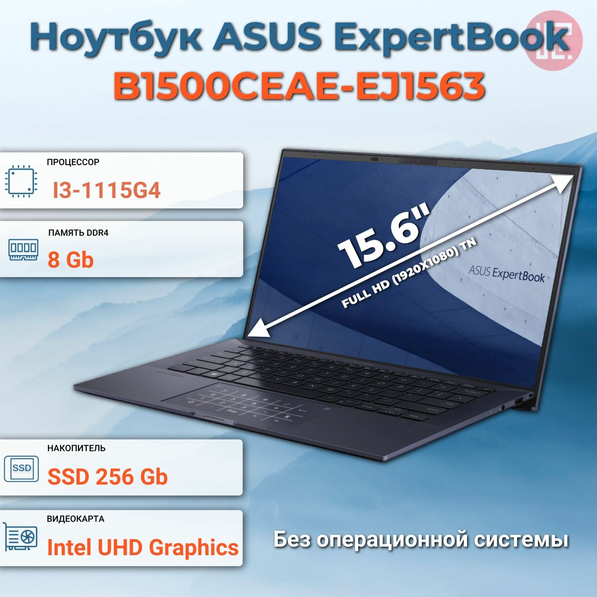 Купить Ноутбук ASUS ExpertBook B1 B1500CEAE-EJ1563 Intel i3-1115G4/8G/256G SSD/15.6" FHD(1920x1080)/Intel UHD Graphics/No OS Черный, 90NX0441-M19180