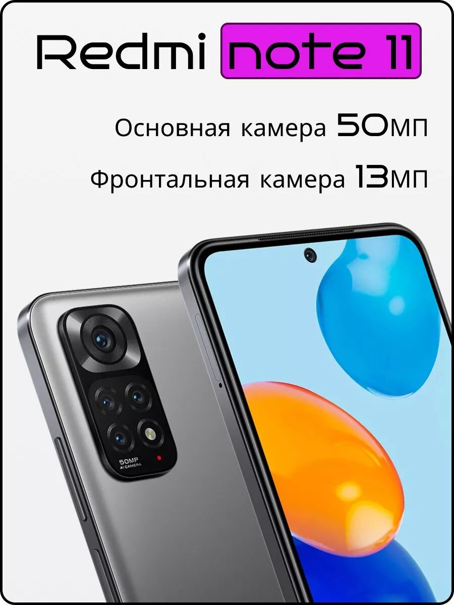 Смартфон Xiaomi Redmi Note 11 4G 6/128 gb, Серый, CN Global Rom