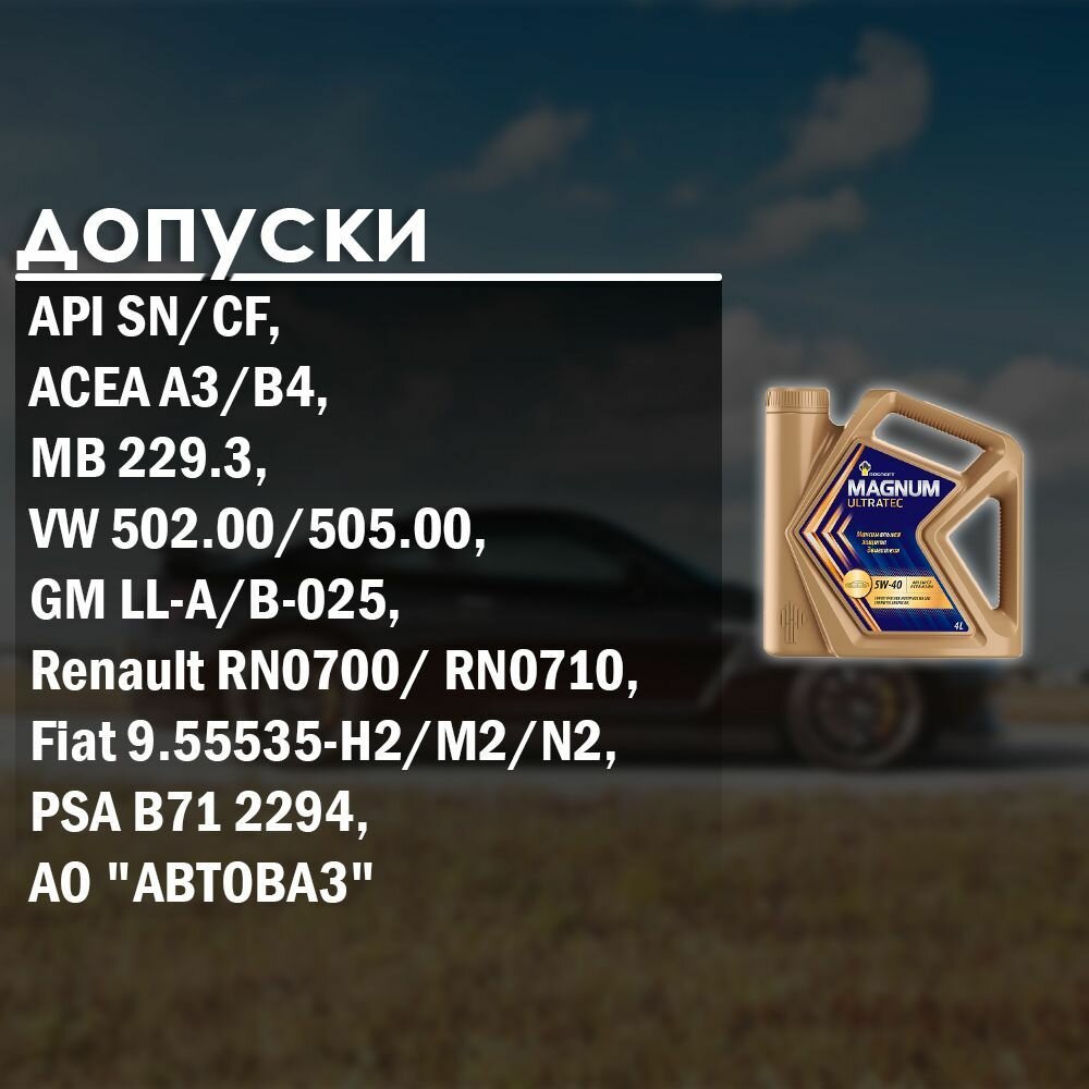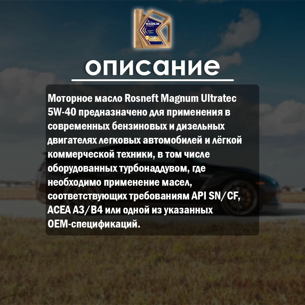 Масло моторное роснефть MAGNUM ULTRATEC 5W40 синтетика 4 л 40815442