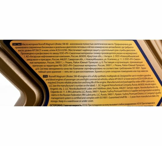Моторное масло Rosneft Magnum ultratec 5W40 SN/CF 4л. ROSNF-5W40MU-4L