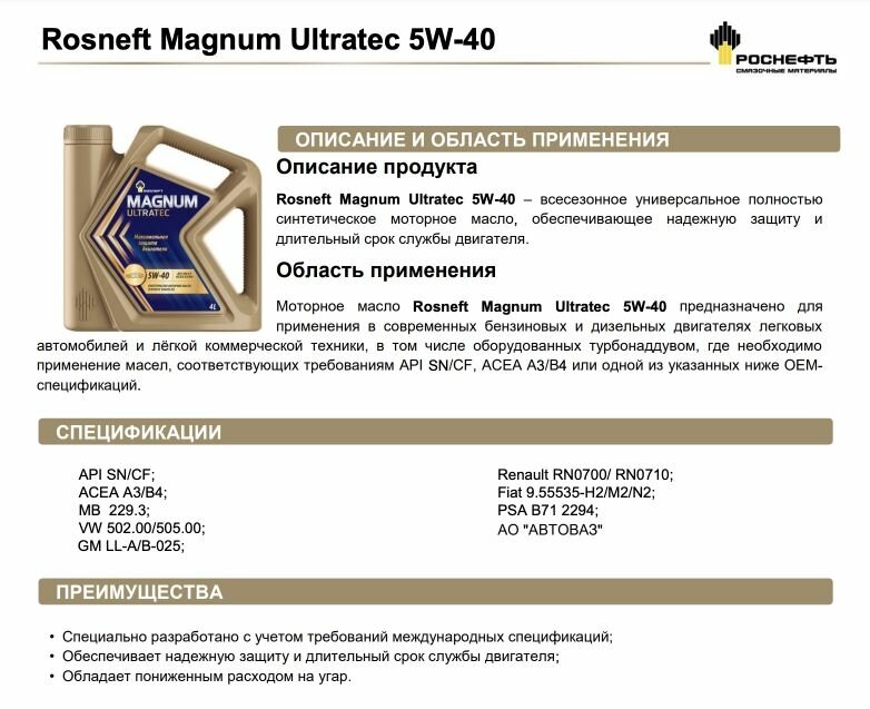Ниже Вы можете прочитать отзывы на Синтетическое моторное масло Роснефть Magnum Ultratec 5W-40, 4 л, 1 шт., ознакомится с подробными характеристиками, посмотреть интересные обзоры и фотографии на Синтетическое моторное масло Роснефть Magnum Ultratec 5W-40, 4 л, 1 шт..