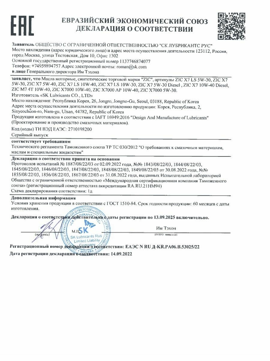 Масло моторное ZIC X7 5W-40 (1л) (132662) ZIC-5W40-X7-1L