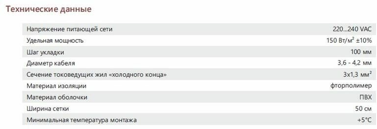 Греющий кабель Oasis 1300 6,6-11,5м2 1300Вт
