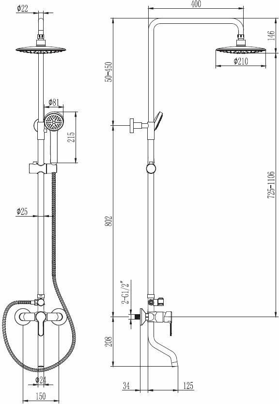 | Количество режимов верхнего душа | 1 |
