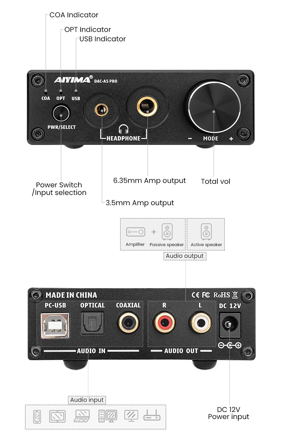 ЦАП с предусилителем AIYIMA DAC A5 Pro USB, оптическое аудио S/PDIF, Coaxial интересное: