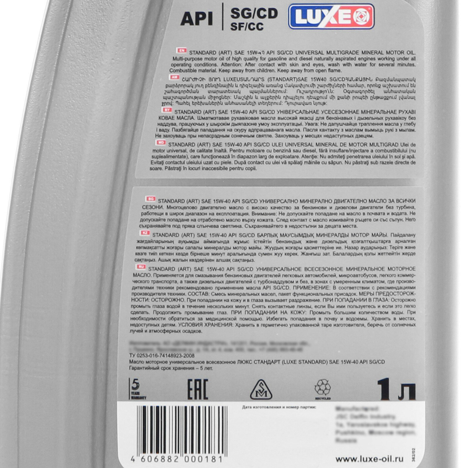 LUXE ART 15W40 SG/CD минеральное 5л "Стандарт" (1/4)