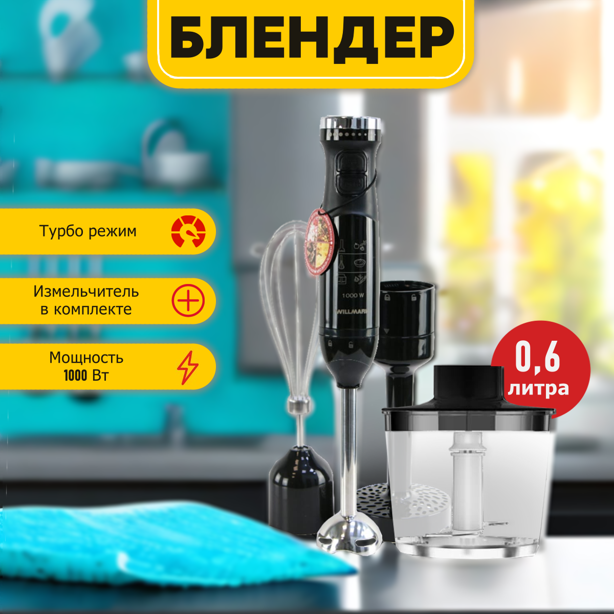 Блендер погружной WILLMARK WHB-1155BS электрический, 1000 Вт