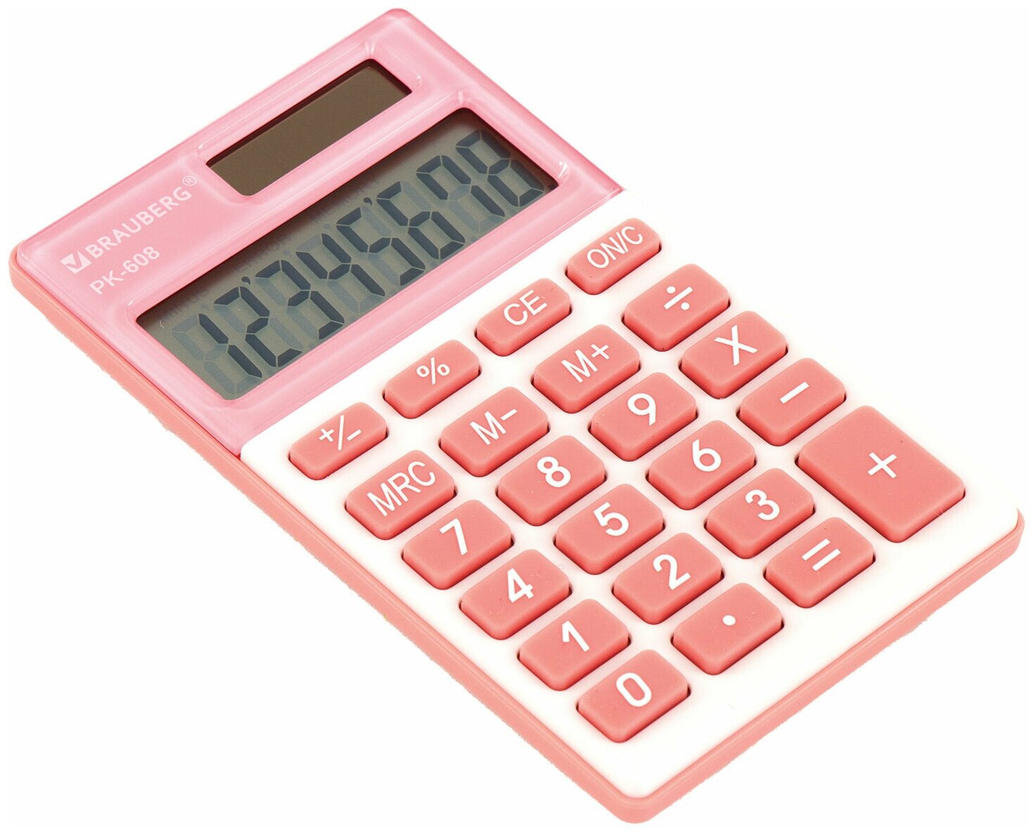 Калькулятор карманный BRAUBERG PK-608-PK (107x64 мм), 8 разрядов, двойное питание, розовый