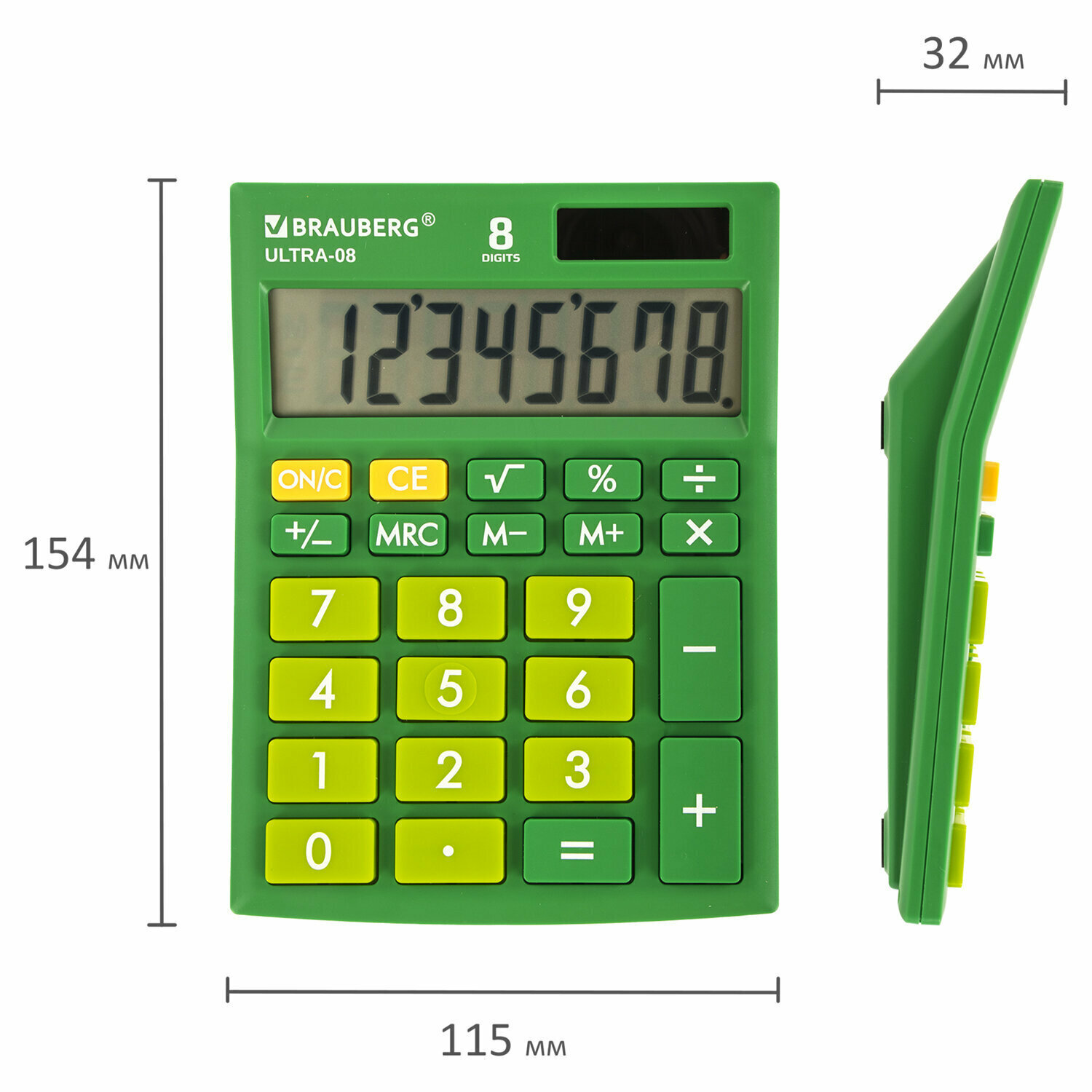 Калькулятор настольный BRAUBERG ULTRA - 08 - GN, компактный (154x115 мм), 8 разрядов, двойное питание, зеленый