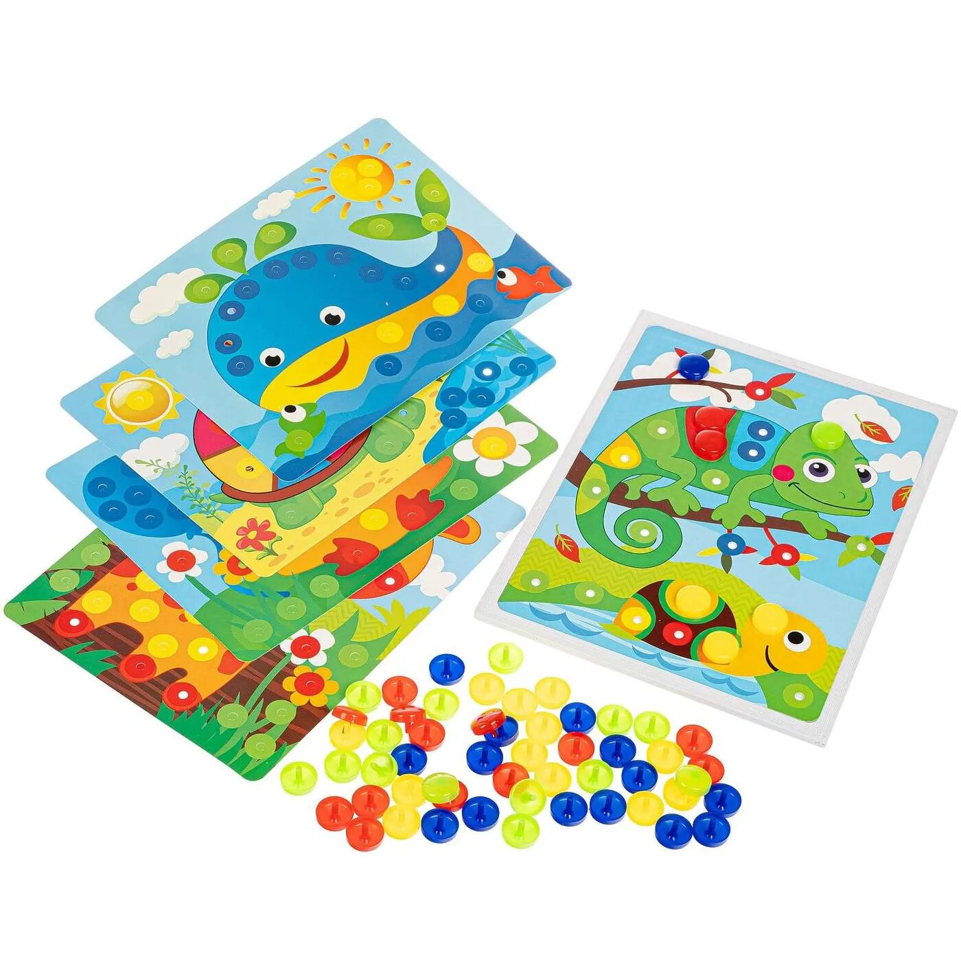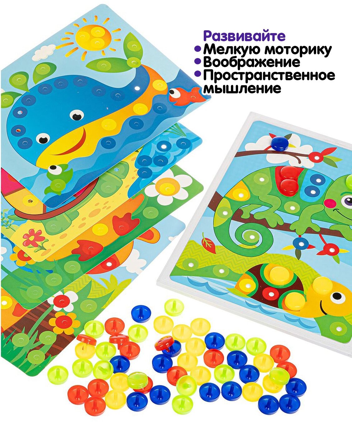 Купить Мозаика для малышей Bondibon, 5 картинок-шаблонов, 60 фишек,