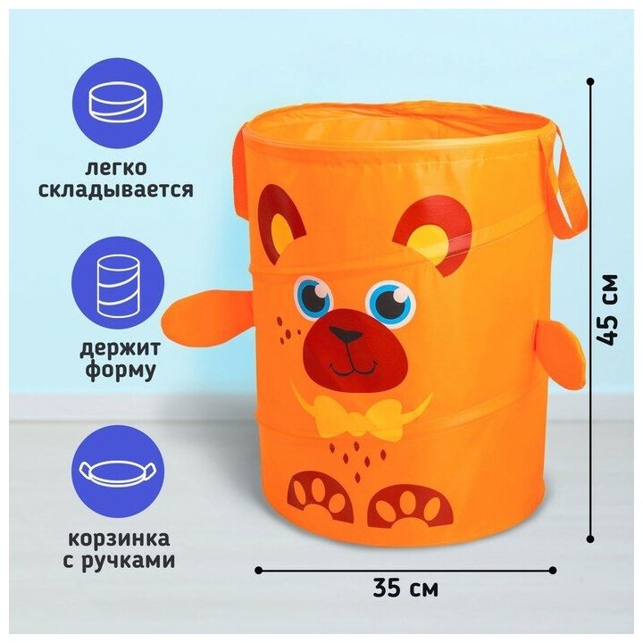 Корзина для игрушек «Медвежонок», с ручками, 45 х 35 х 35 см