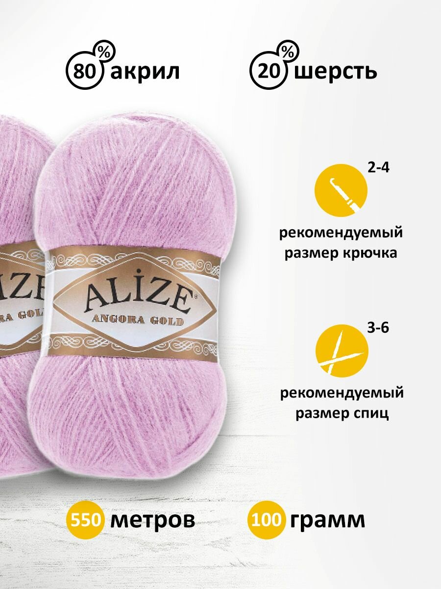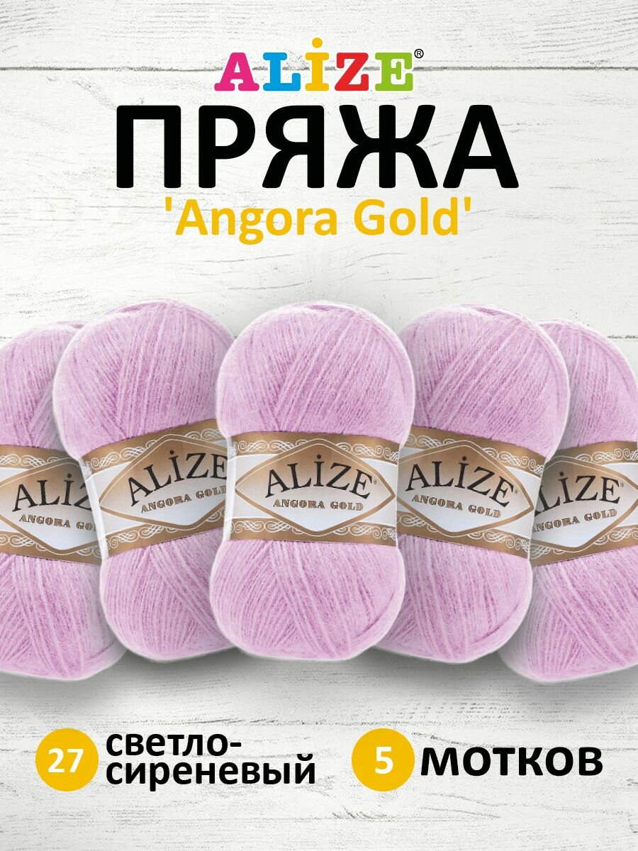 Пряжа для вязания ALIZE 'Angora Gold', 100г, 550м (80% акрил, 20% шерсть), ТУ (27 светло-сиреневый), 5 мотков