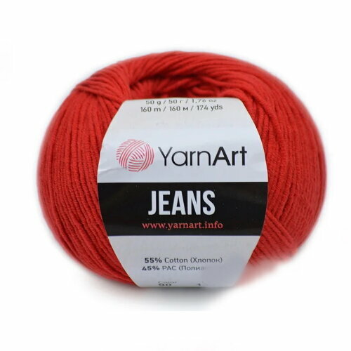 Пряжа YarnArt Jeans красный (0026), 55%хлопок/45%акрил, 160м, 50г, 1шт