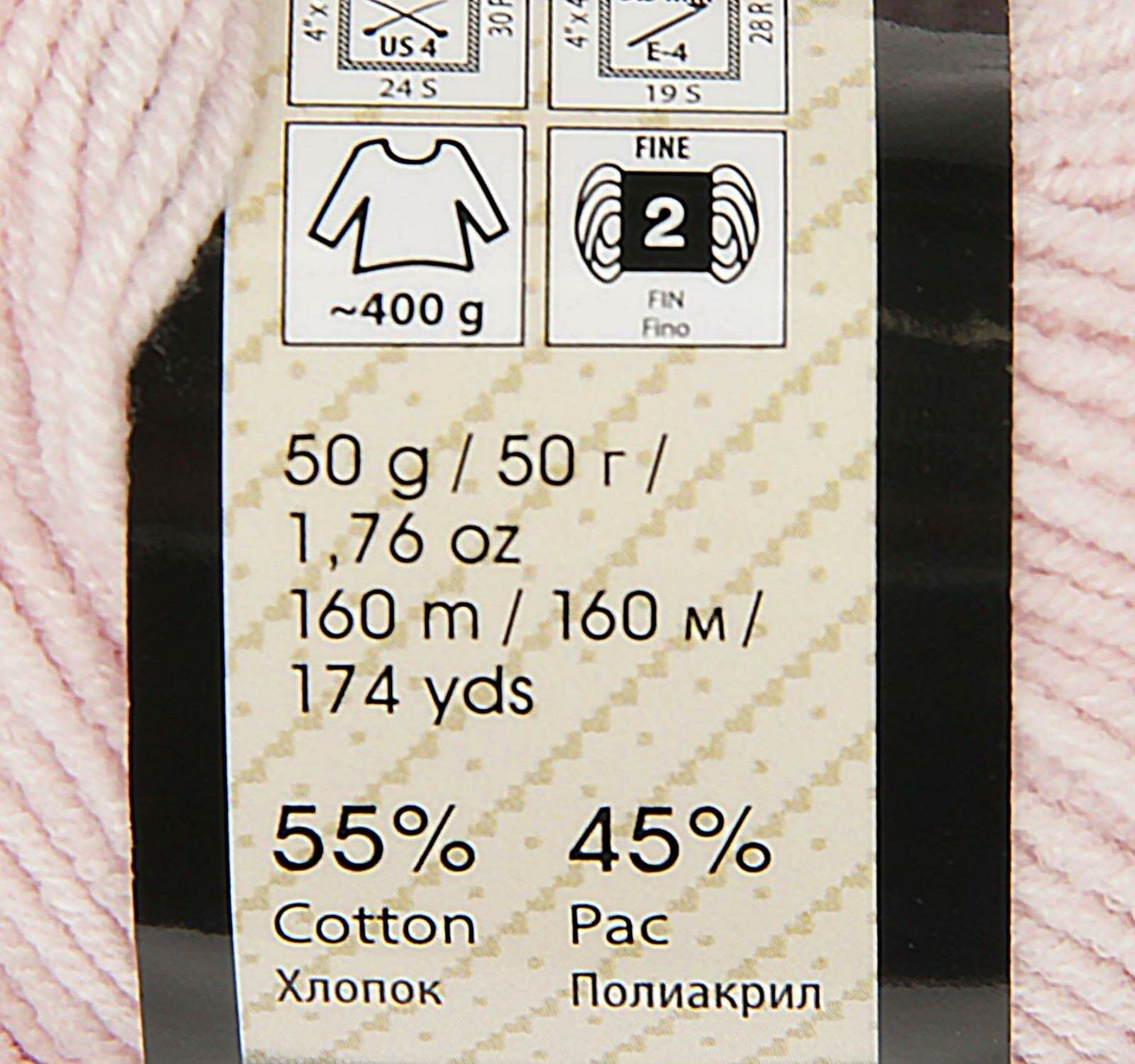 Пряжа "Джинс", цвет: 74 - Розовый светлый, 2 шт., Хлопок 55%, Полиакрил 45%, 50 гр. 160 м.