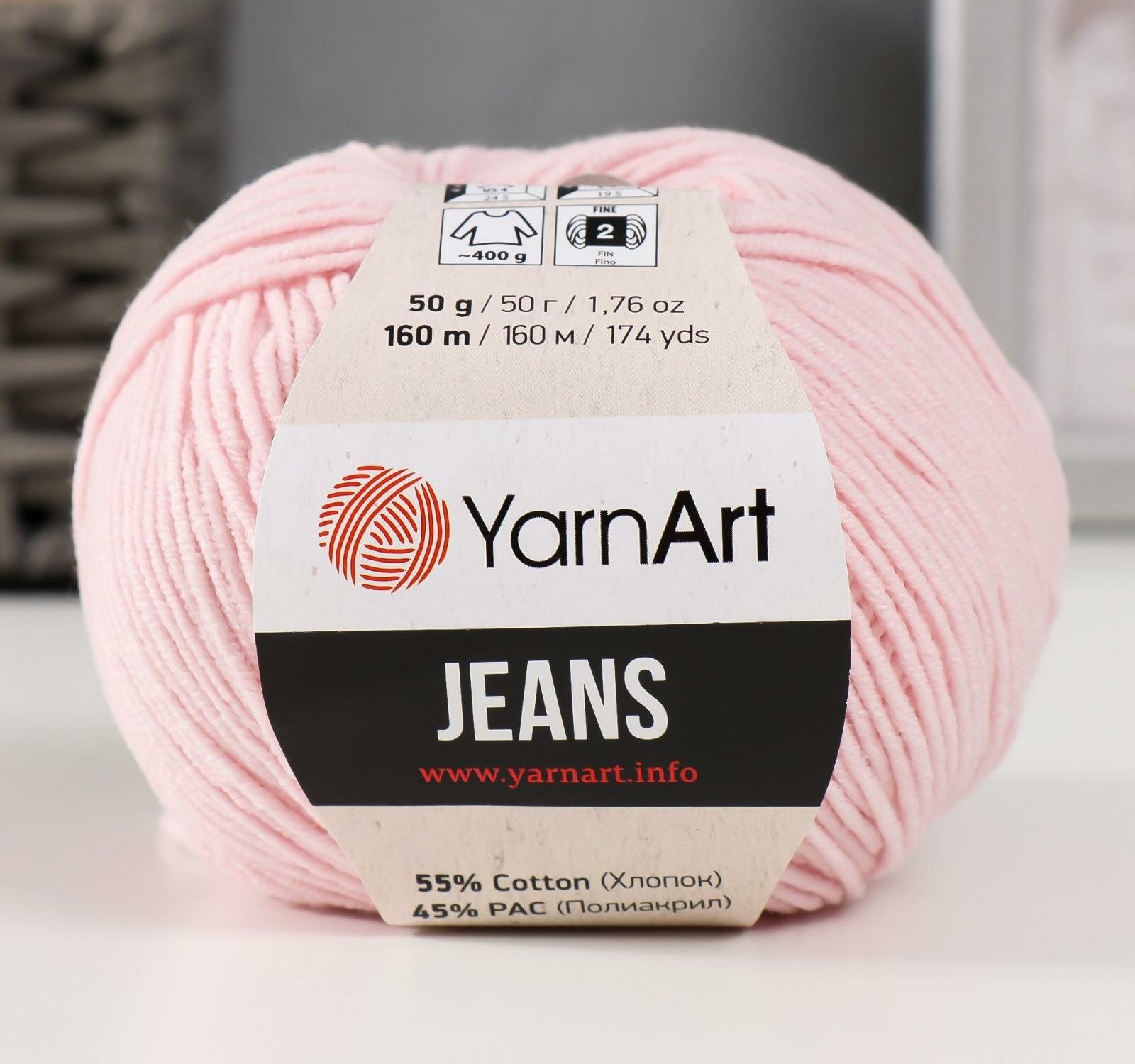 СохранитьПряжа YarnArt Jeans (ЯрнАрт Джинс) - 1 моток Цвет: 18 пудра 55% хлопок, 45% полиакрил 160м/50г интересное:
