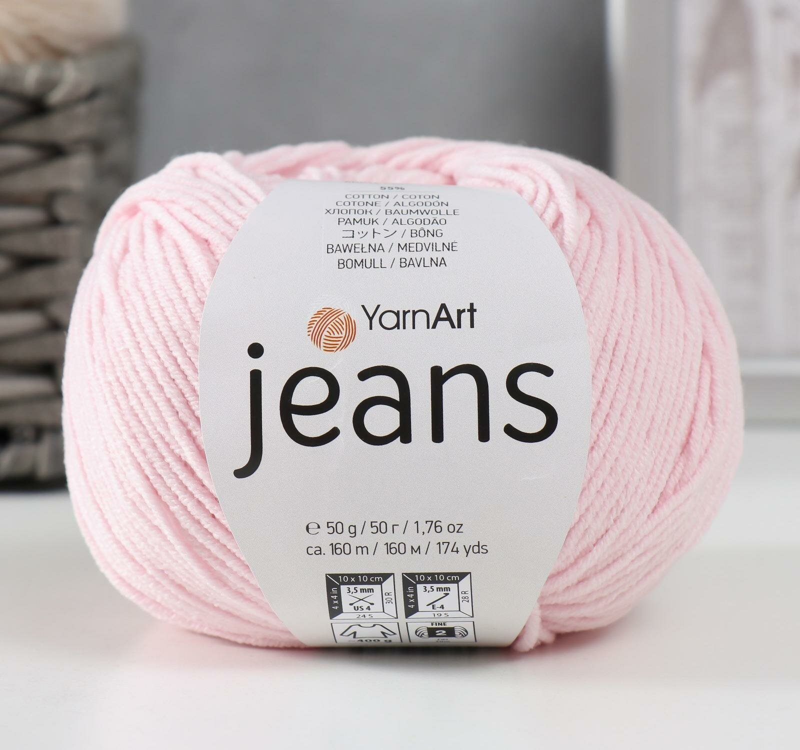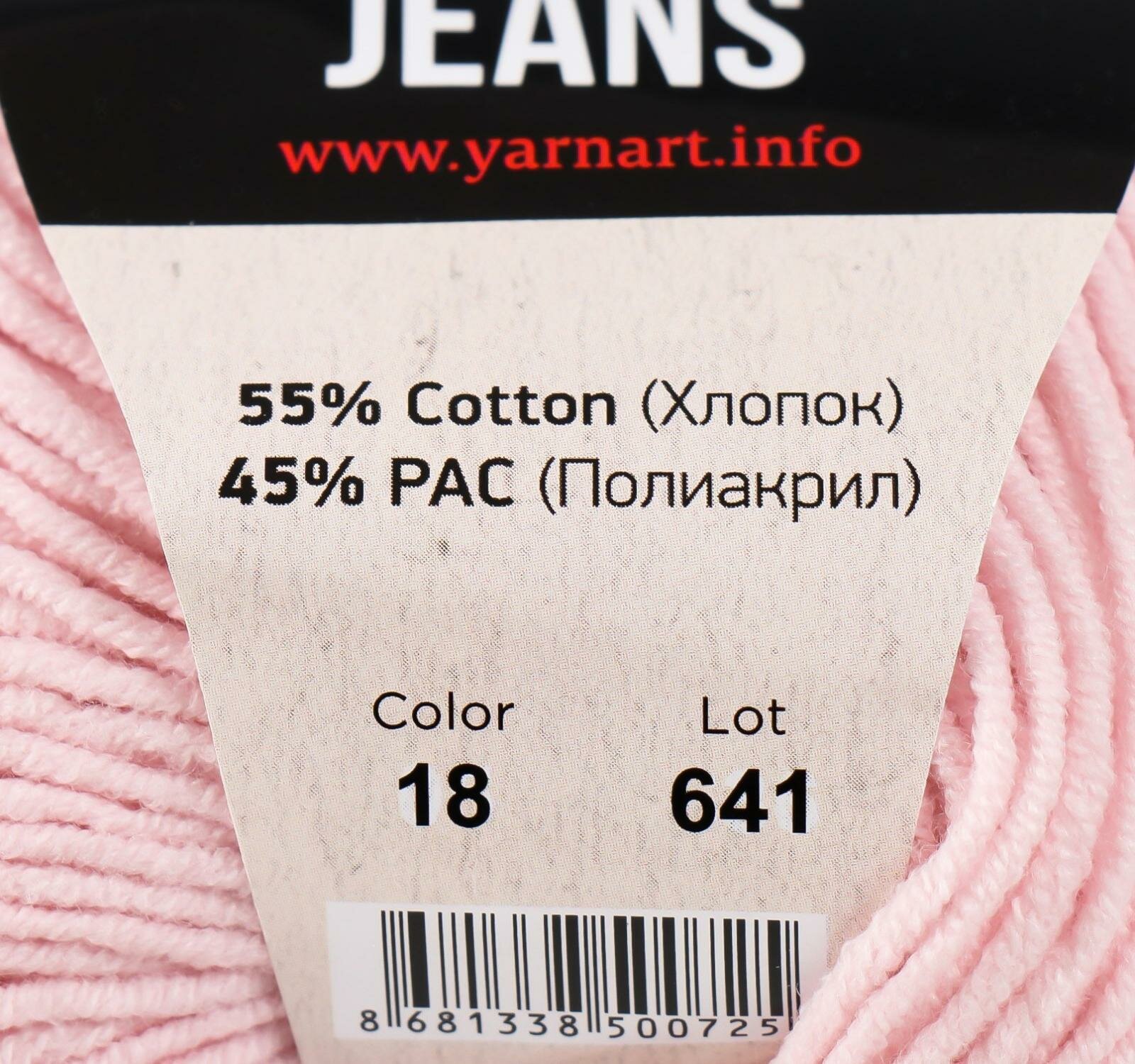 Купить Пряжа YarnArt Jeans (ЯрнАрт Джинс) - 1 моток Цвет: 18 пудра 55% хлопок, 45% полиакрил 160м/50г