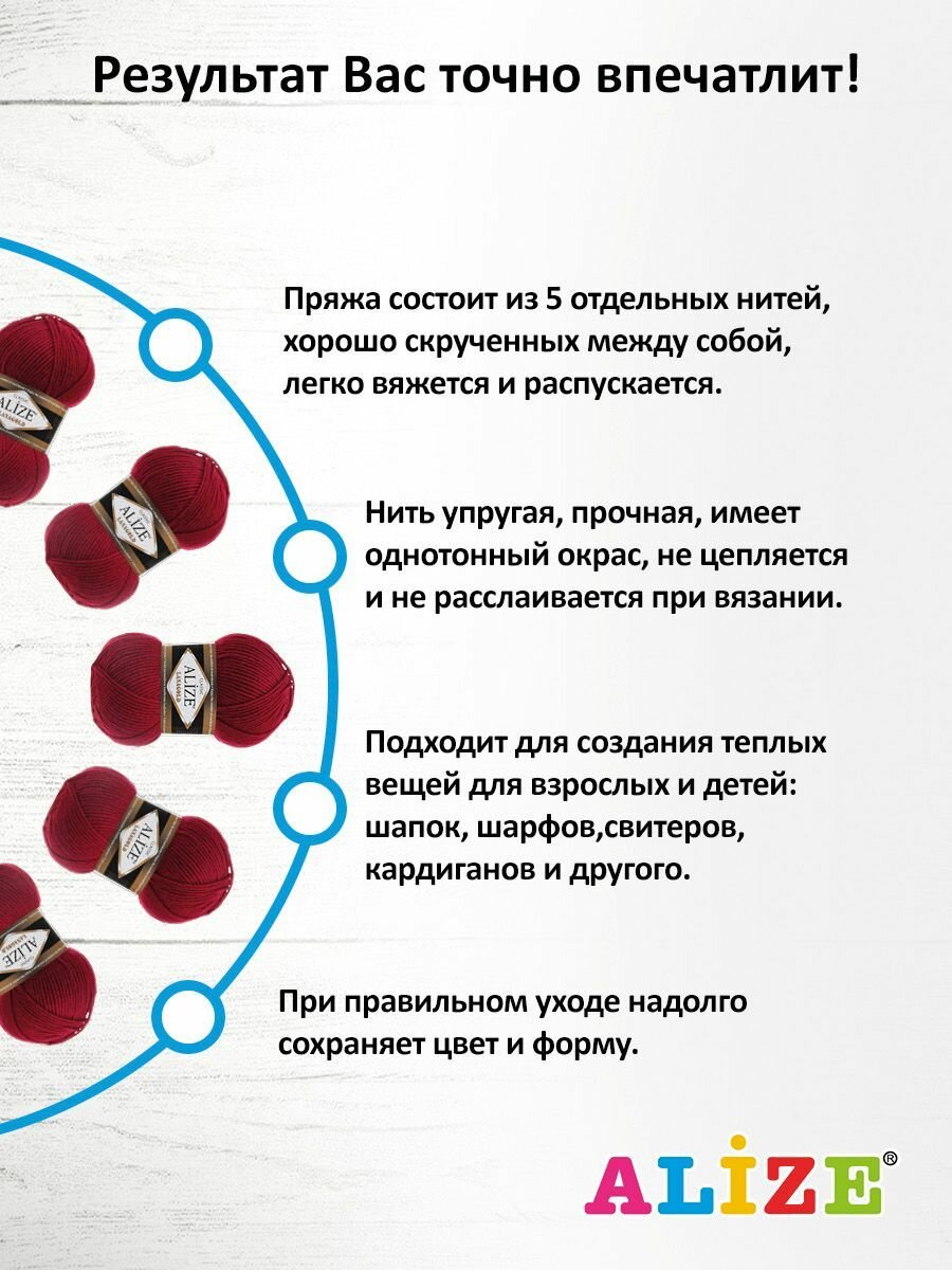 Пряжа Alize Lanagold (Ланаголд) цвет красный 56, 49% шерсть, 51% акрил 100г 240м 5шт