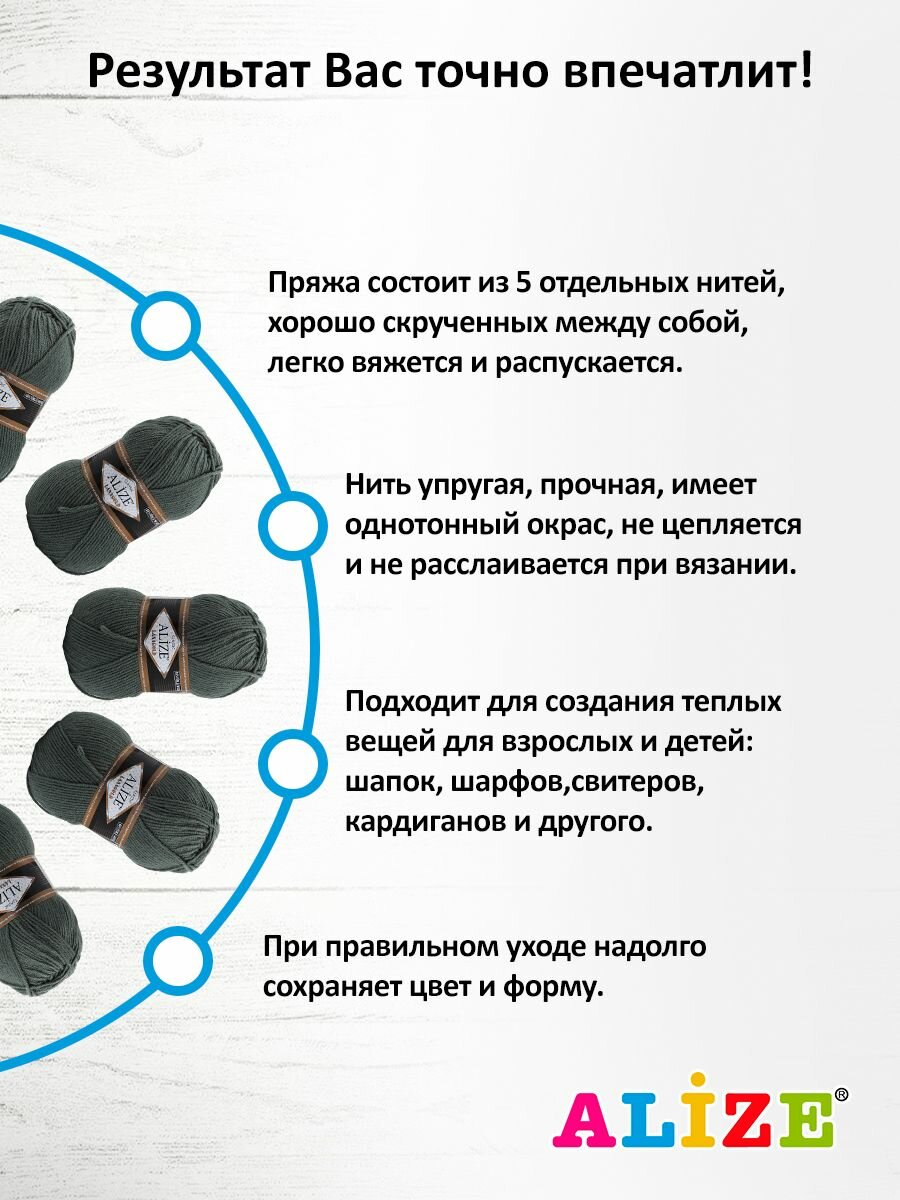 Пряжа Alize Lanagold (Ланаголд) цвет античный зеленый 507, 49% шерсть, 51% акрил 100г 240м 5шт