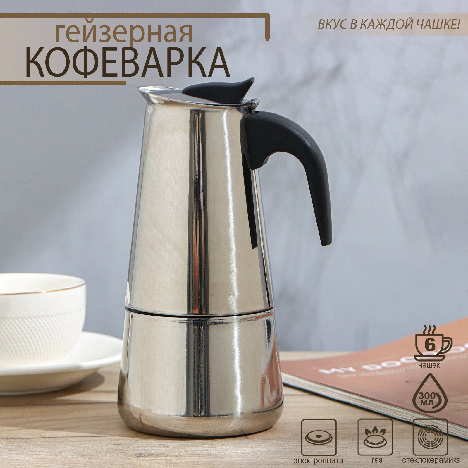 Купить Доляна Кофеварка гейзерная Доляна «Стиль», на 6 чашек, 300 мл