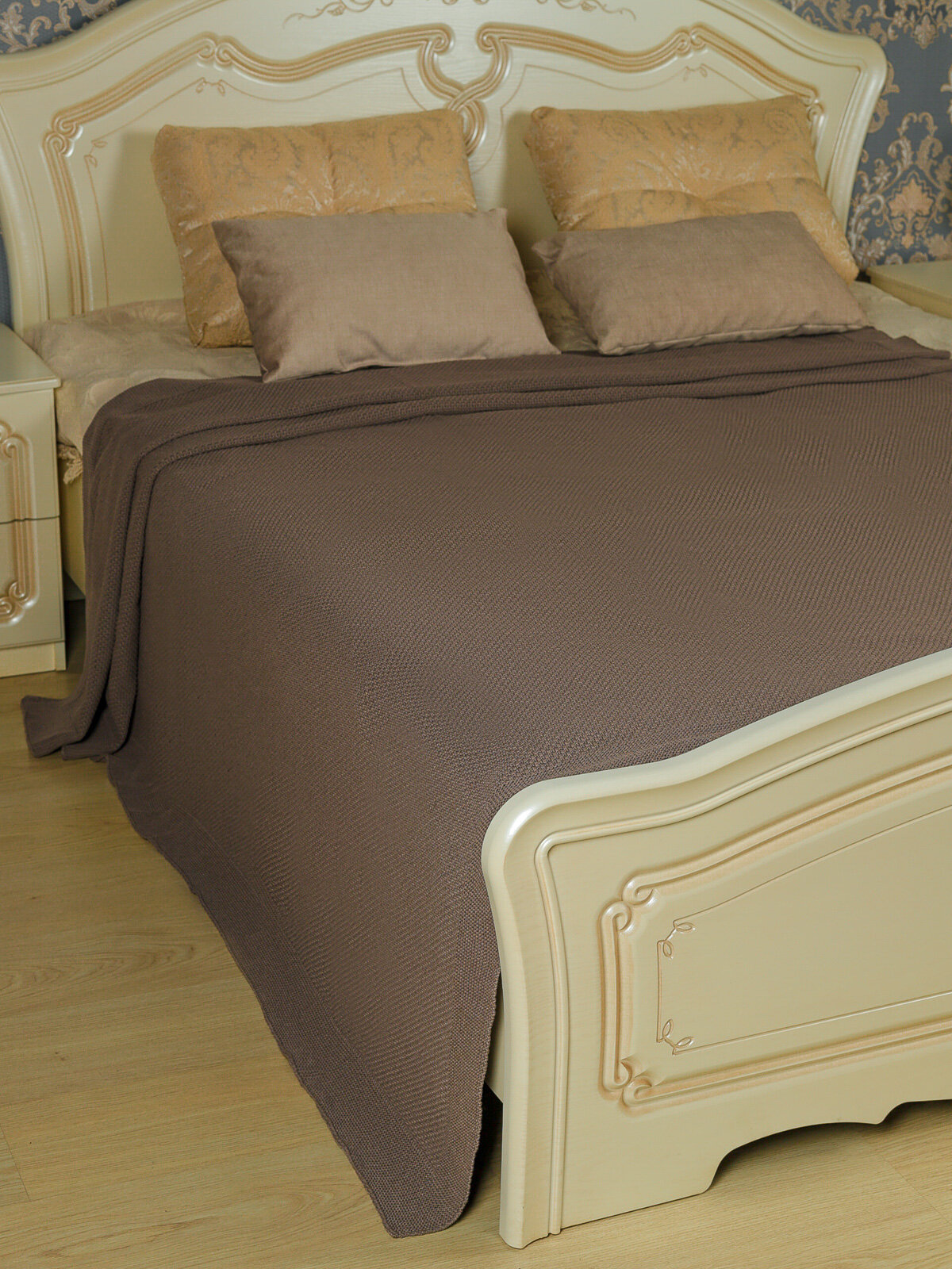 Плед 180х220, вязаный, Warm Whiff, коричневый, хлопок 100%, покрывало на кровать, на диван, на кресло, большой, тонкий, в подарочной коробке