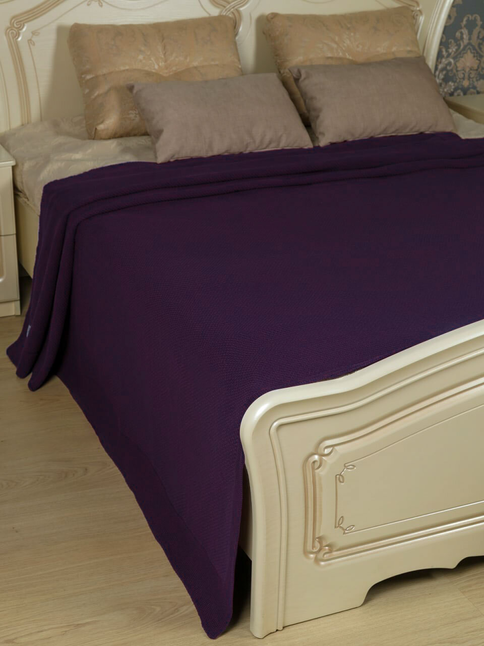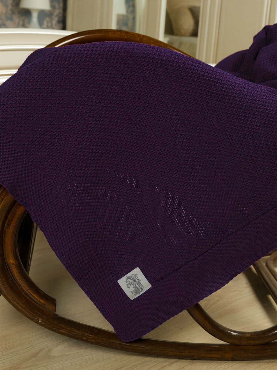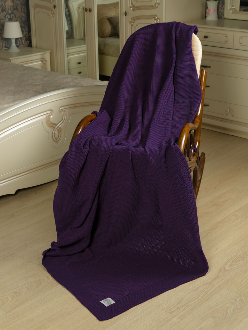 Плед вязаный, Warm Whiff, фиолетовый, 180х220, хлопок, покрывало для взрослого, дачи, спальни, кровати, однотонное одеяло, в подарок, мягкий