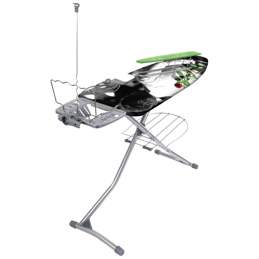 | Отзыв: | Отличная покупка, я не пожалела. Доска прочная, тяжёлая, стоит устойчиво, не шатается вообще. Поверхность ровная, потому что толстый чехол. Понравился держатель для шнура, шнур не путается при глажке. |