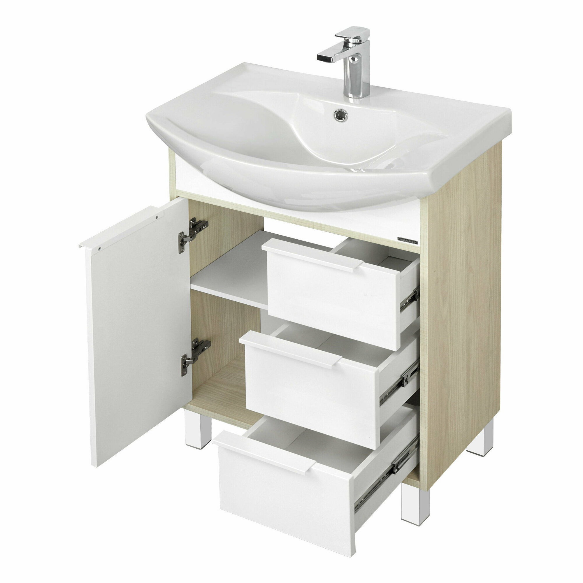 Тумба с раковиной Акватон Рико 65 1A2133K1RIB90, белый/ясень фабрик
