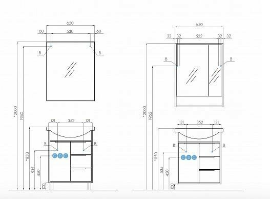 1A2133K1RIB90 Набор: 1A213301RIB90 Тумба-умывальник Рико 65/ 1WH207782 Раковина Смайл 65